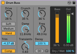 Drum Buss: Megőrülsz. Egy olyan dob groupokra alkalmazható all-in-one eszköz, mely a kezdő zeneszerzőkek is (akik nem ismerik pontosan az eq-k, szaturátorok, kompresszorok működését) könnyen kezelhető, és kiváló eredmény hozható ki belőle a nélkül, hogy elszállnánk. Szarból várat? Ezzel az eszközzel lehetséges. Na jó, ez némi túlzás, de az biztos, hogy a vékonyka, íztelen dobsoundokból pár másodperc alatt igazi vastag ütős hangzást csinálhatunk. Azt kell elképzelni, hogy néhány paraméter változtatással oda lyukadunk ki, mint 3-4 analóg eszköz szakszerű beállításával. A kompresszión, szaturáción kívül hangnemre állíthatjuk, milyen mélytartományt és milyen mértékben szintetizáljon hozzá az eszköz a soundunkhoz! Döbbenetes a hangja!